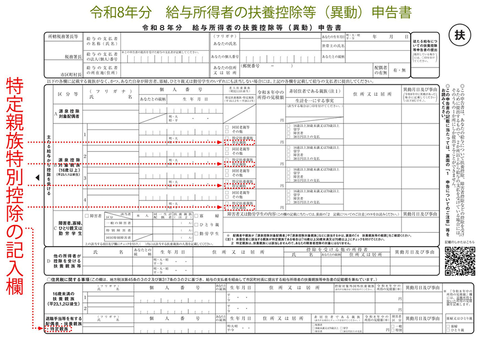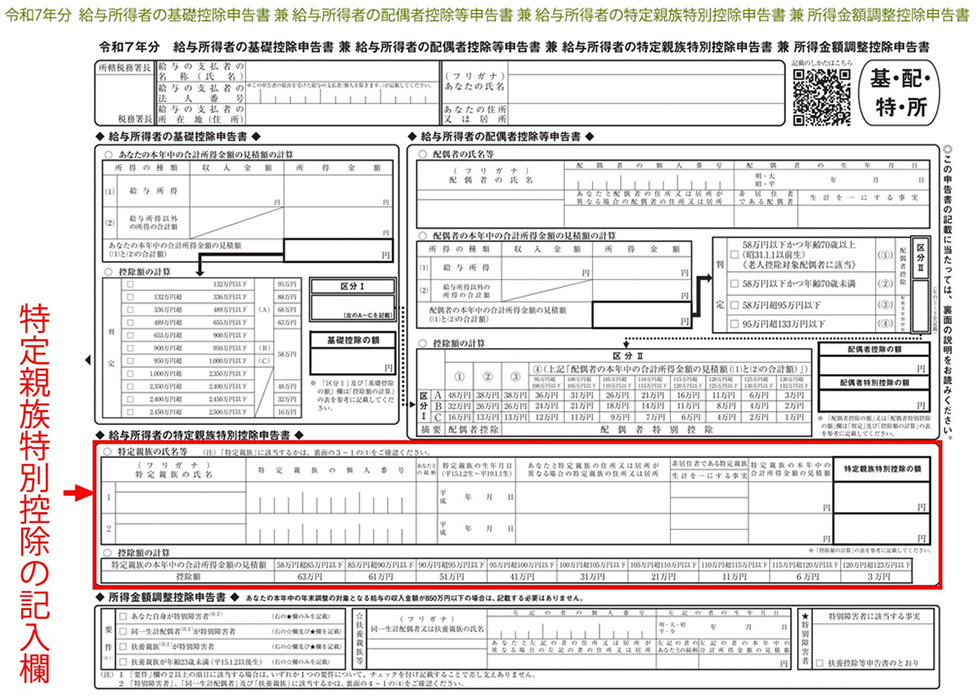 特定親族特別控除の記入欄は、下半分の箇所(図の赤枠)にあります。
