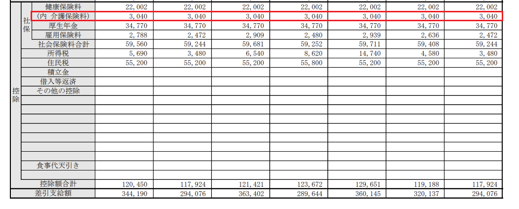この項目には、健康保険料のうち介護保険料に該当する金額が内訳として表示されます。