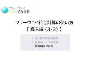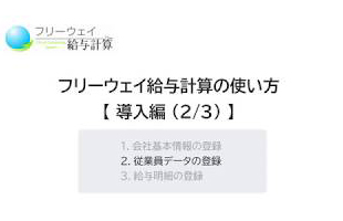 はじめて給与計算ソフトを使う方も、これまで利用していた給与計算ソフトからの乗り換えを検討している方も、気になるのは操作方法ではないでしょうか。従業員5人まで永久無料のクラウド給与計算ソフト「フリーウェイ給与計算」では、使い方がよく分かる動画を提供しています。マニュアルよりも、直感的に理解できると思いますので、ぜひご覧ください。